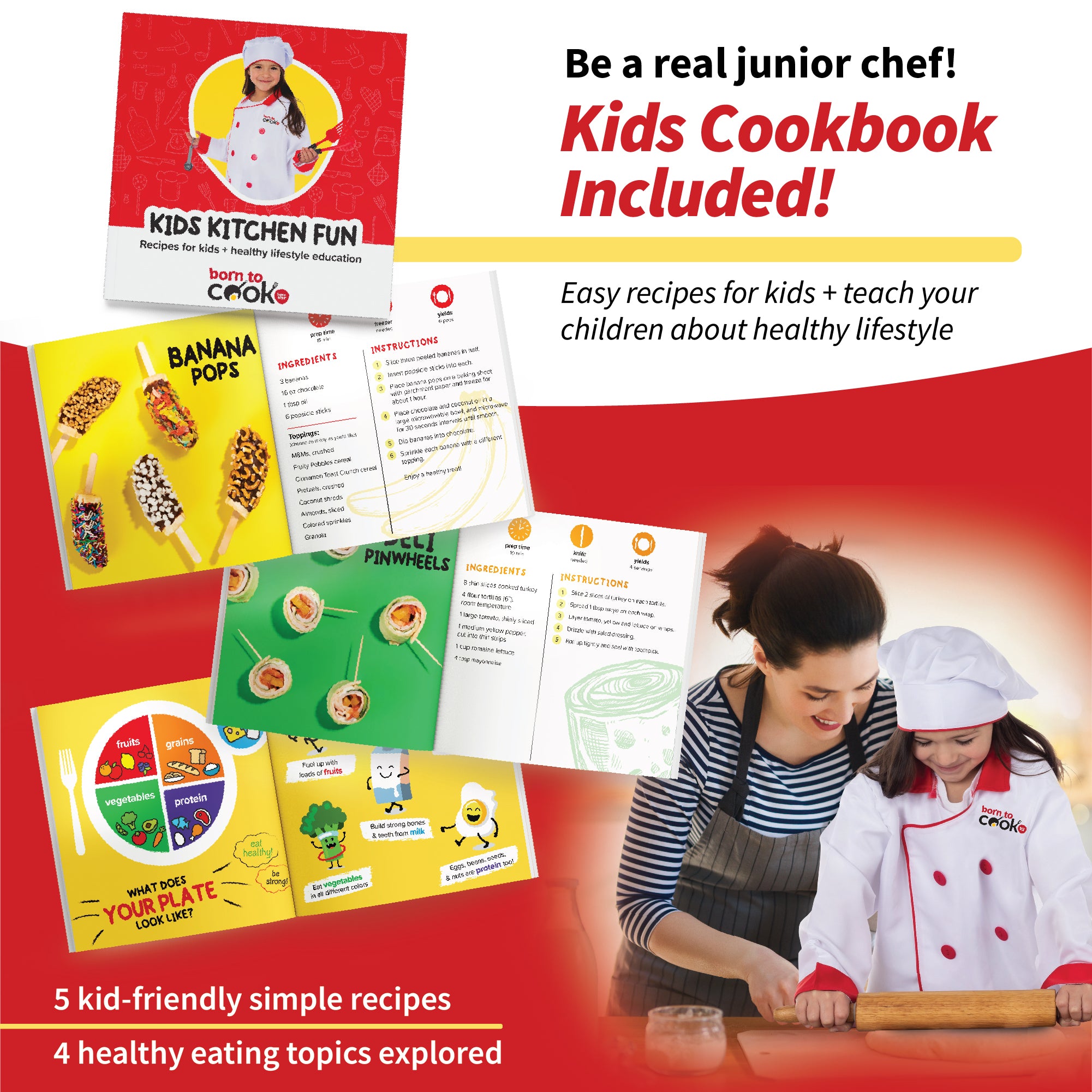 Born Toys Chef Costume for Kids w/ Chef Hat for Kids Ages 3-7, Kids Kitchen Accessories Set w/ Fun Recipe Book, Cooking Set for Kids Costume Washable and Dress Up & Pretend Play for Boys & Girls