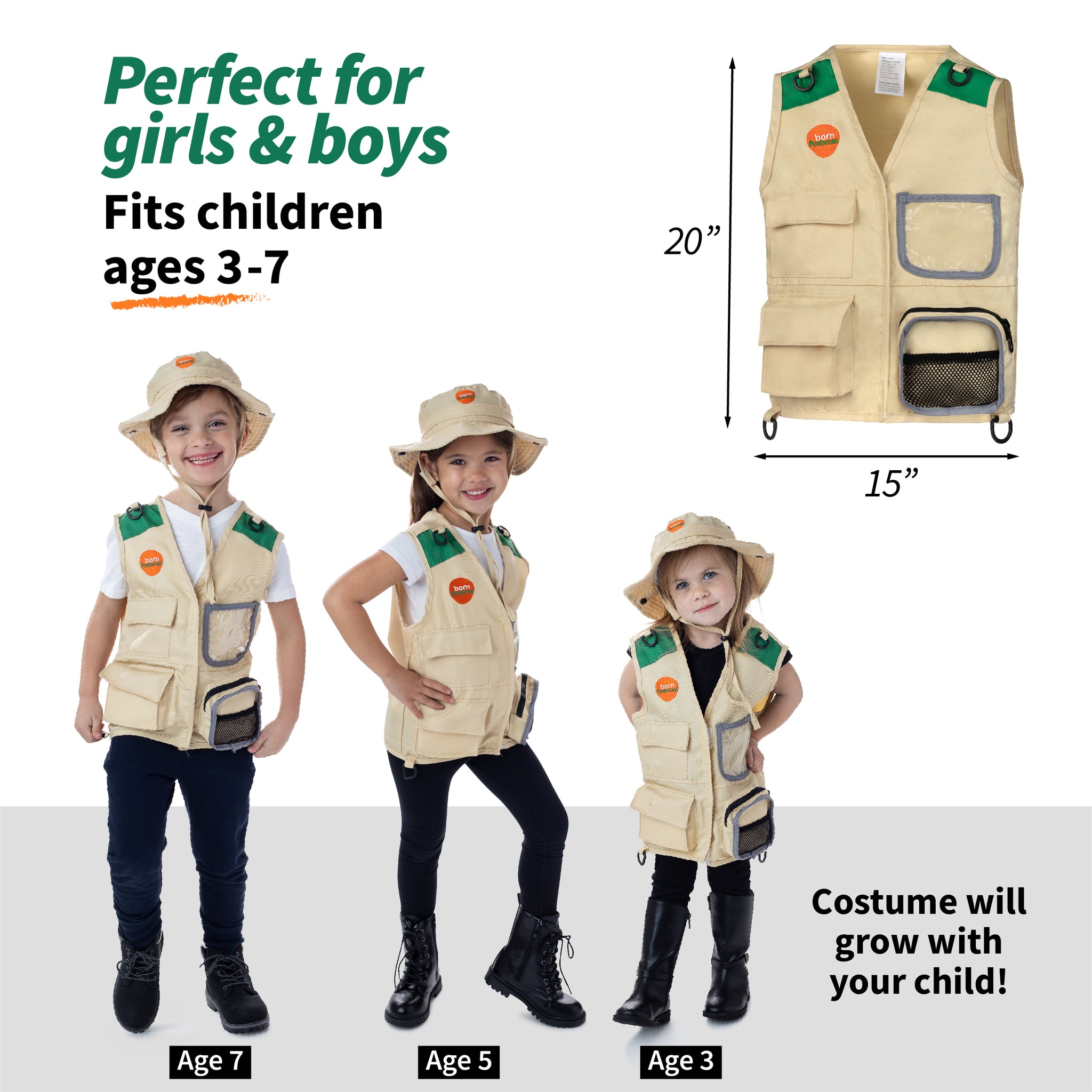 - 🕵🏼♂️ DURABLE AND PERFECT FOR KIDS: The kid khaki vest is machine washable made from durable fabric suitable for indoor and outdoor games. Ideal costume for Christmas, Halloween and other occasions perfect for dress-up, role-play, pretend play, and career costume like paleontology for kids